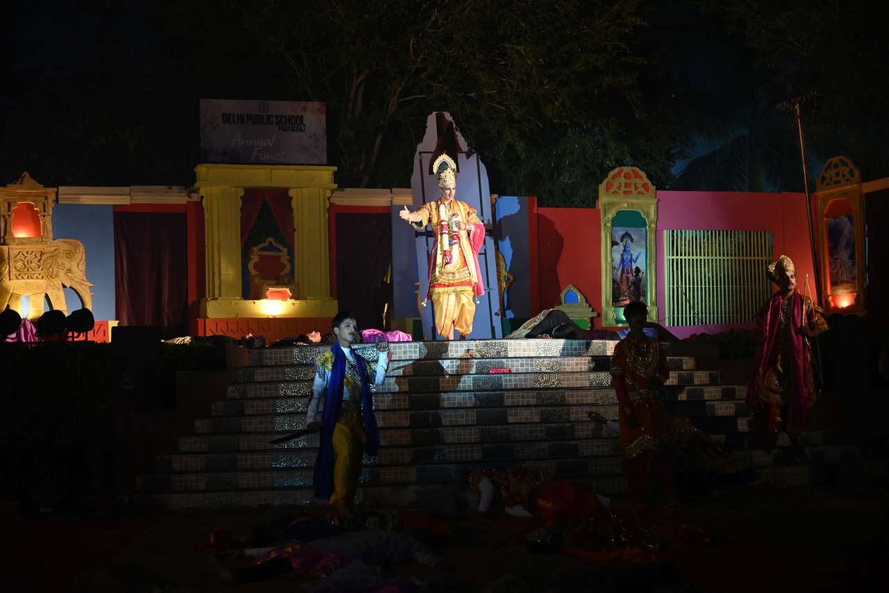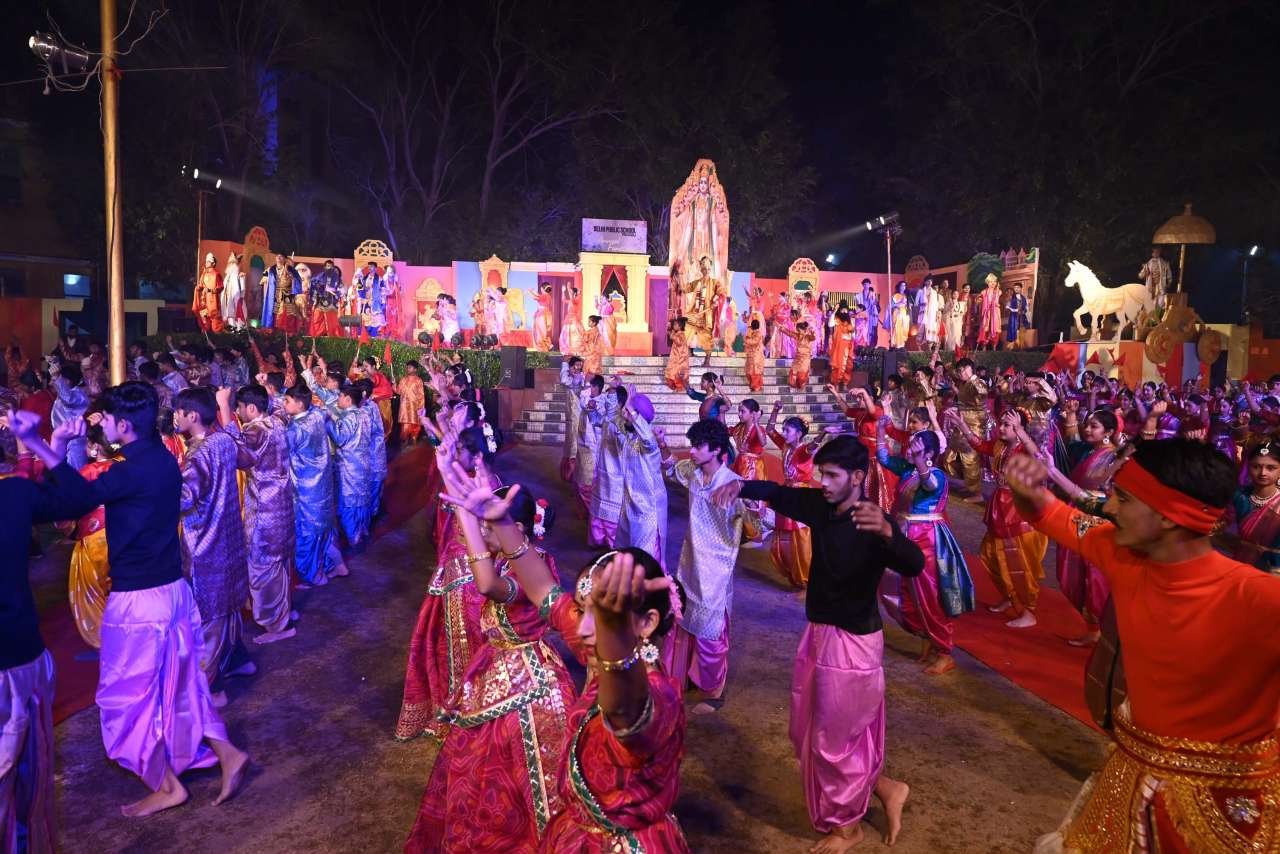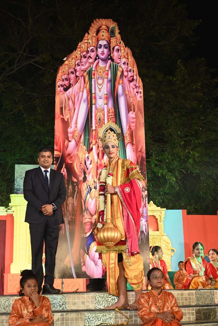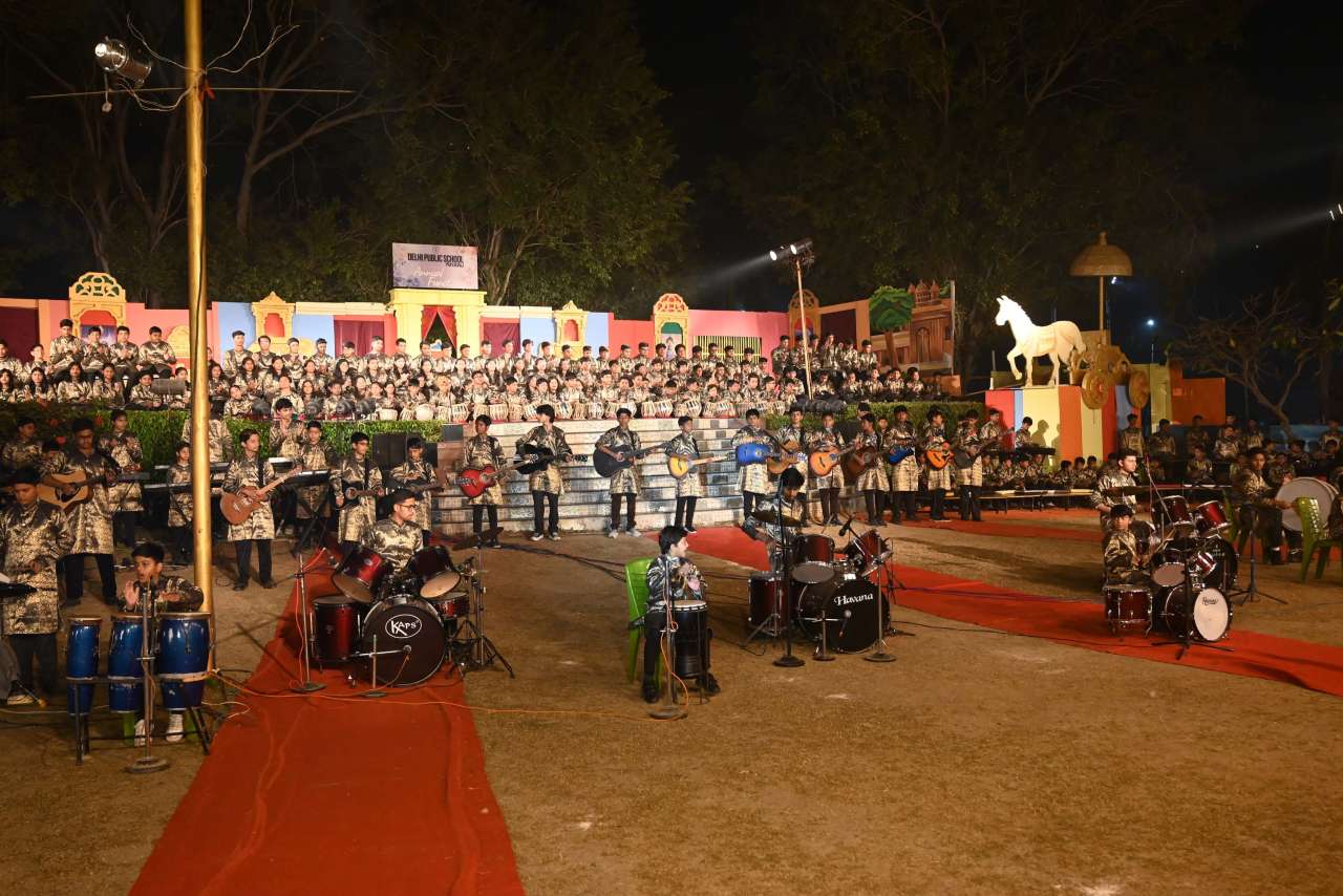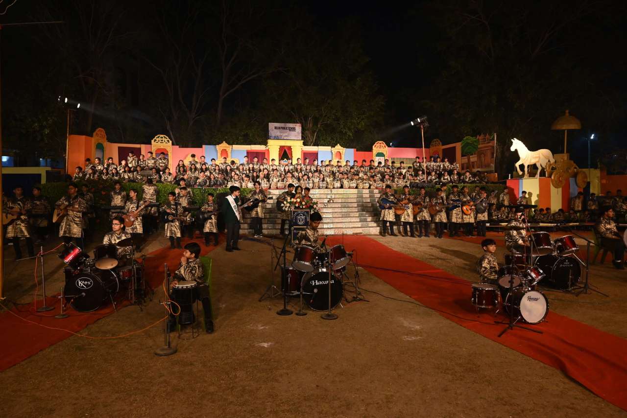 The students of DPS orchestra performed The instrumental prelude, setting a melodious tone, followed by the enchanting Sufi Rang performance that evoked the spiritual essence of Sufi traditions. Young performers from Pre-Nursery to Class 2 delighted the audience with “Straight from the Heart (Emotions)”, a touching portrayal of emotions through creative expression .The grand finale featured the Dance Drama "Dharma Rakshati Rakshitah", where around 450 students from std 3 to 12 magnanimously depicted the timeless principle that righteousness protects those who uphold it. The dance drama left the audience enchanted and enlightened, bringing the Mahabharat Characters alive on the stage, the grand impersonation of Lord Krishna in the “Vishwaroop Darshan Yoga” portrayed by lead actor Krishang Sharma std 11 received a standing ovation by the audience. The entire ground of DPS resonated with Draupadi's and Arjuna's penance portrayed respectively by Vanya Singh Std 11 and Arpan Agarwal Std 11.
