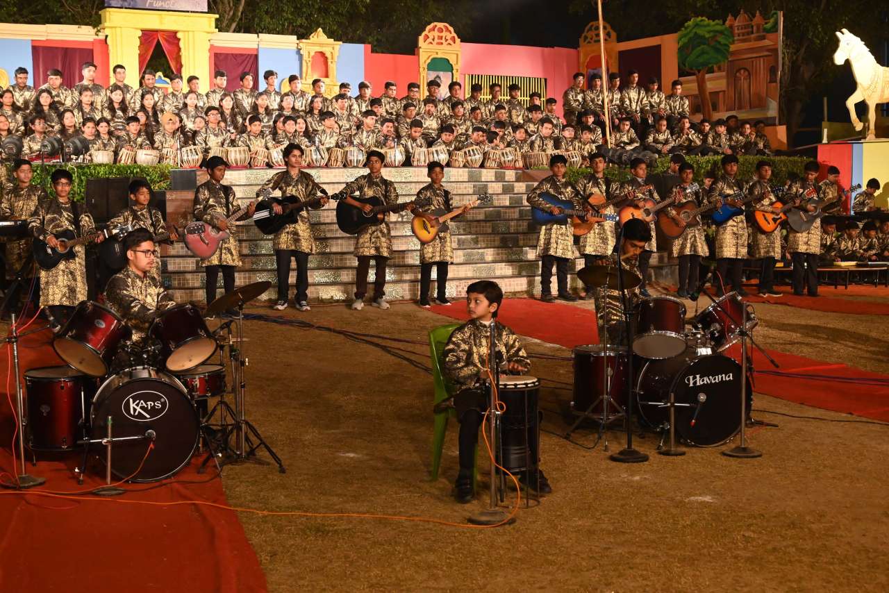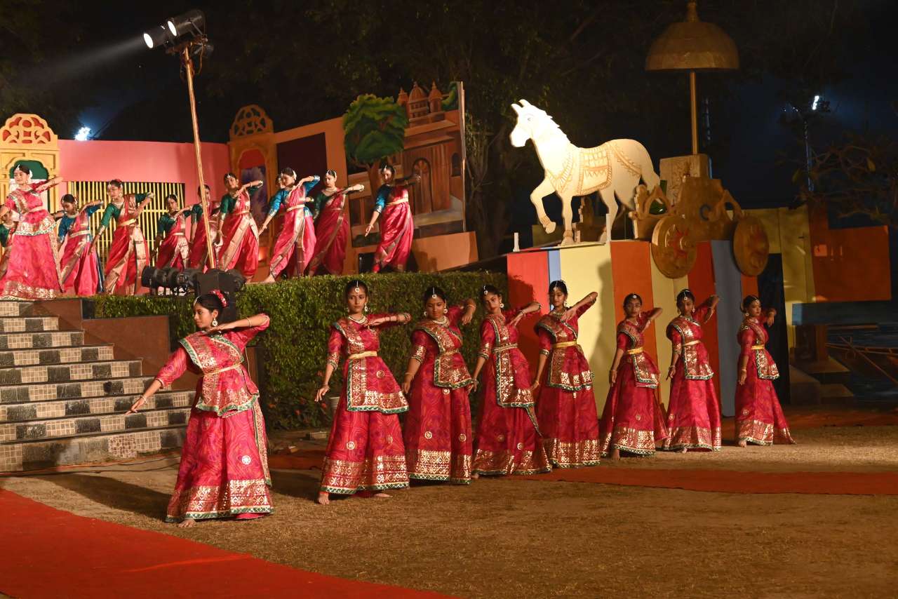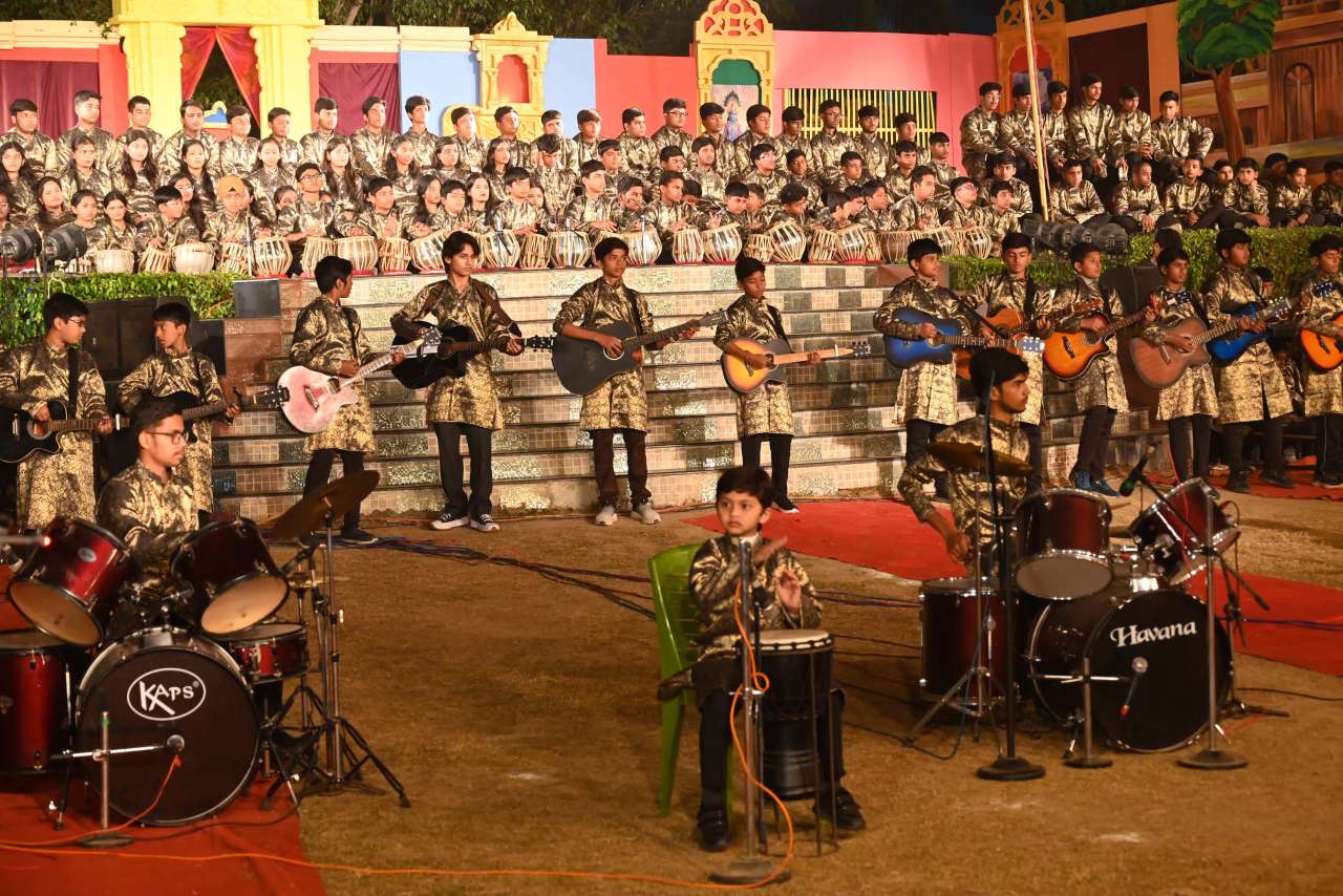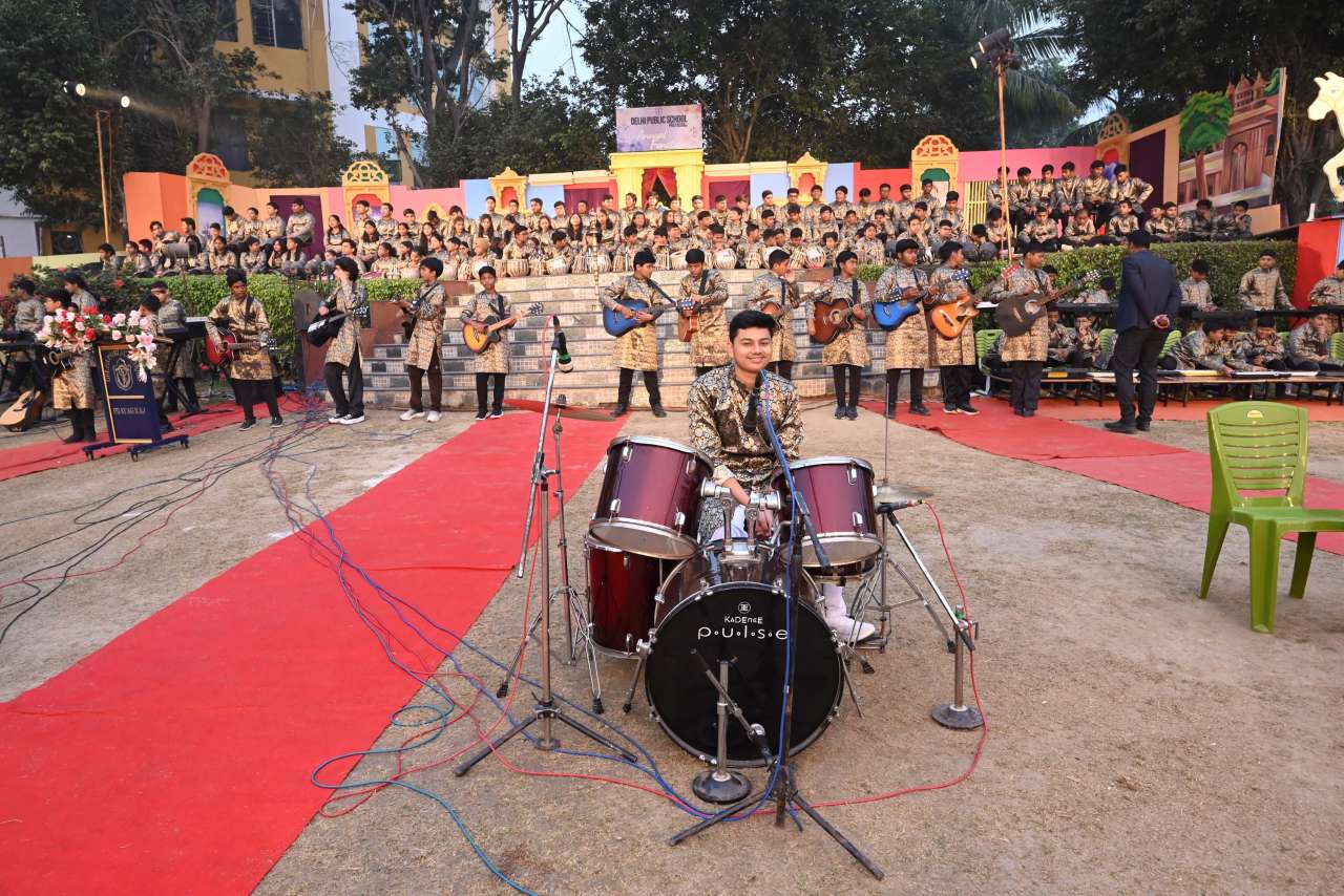 The students of DPS orchestra performed The instrumental prelude, setting a melodious tone, followed by the enchanting Sufi Rang performance that evoked the spiritual essence of Sufi traditions. Young performers from Pre-Nursery to Class 2 delighted the audience with “Straight from the Heart (Emotions)”, a touching portrayal of emotions through creative expression .The grand finale featured the Dance Drama "Dharma Rakshati Rakshitah", where around 450 students from std 3 to 12 magnanimously depicted the timeless principle that righteousness protects those who uphold it. The dance drama left the audience enchanted and enlightened, bringing the Mahabharat Characters alive on the stage, the grand impersonation of Lord Krishna in the “Vishwaroop Darshan Yoga” portrayed by lead actor Krishang Sharma std 11 received a standing ovation by the audience. The entire ground of DPS resonated with Draupadi's and Arjuna's penance portrayed respectively by Vanya Singh Std 11 and Arpan Agarwal Std 11.