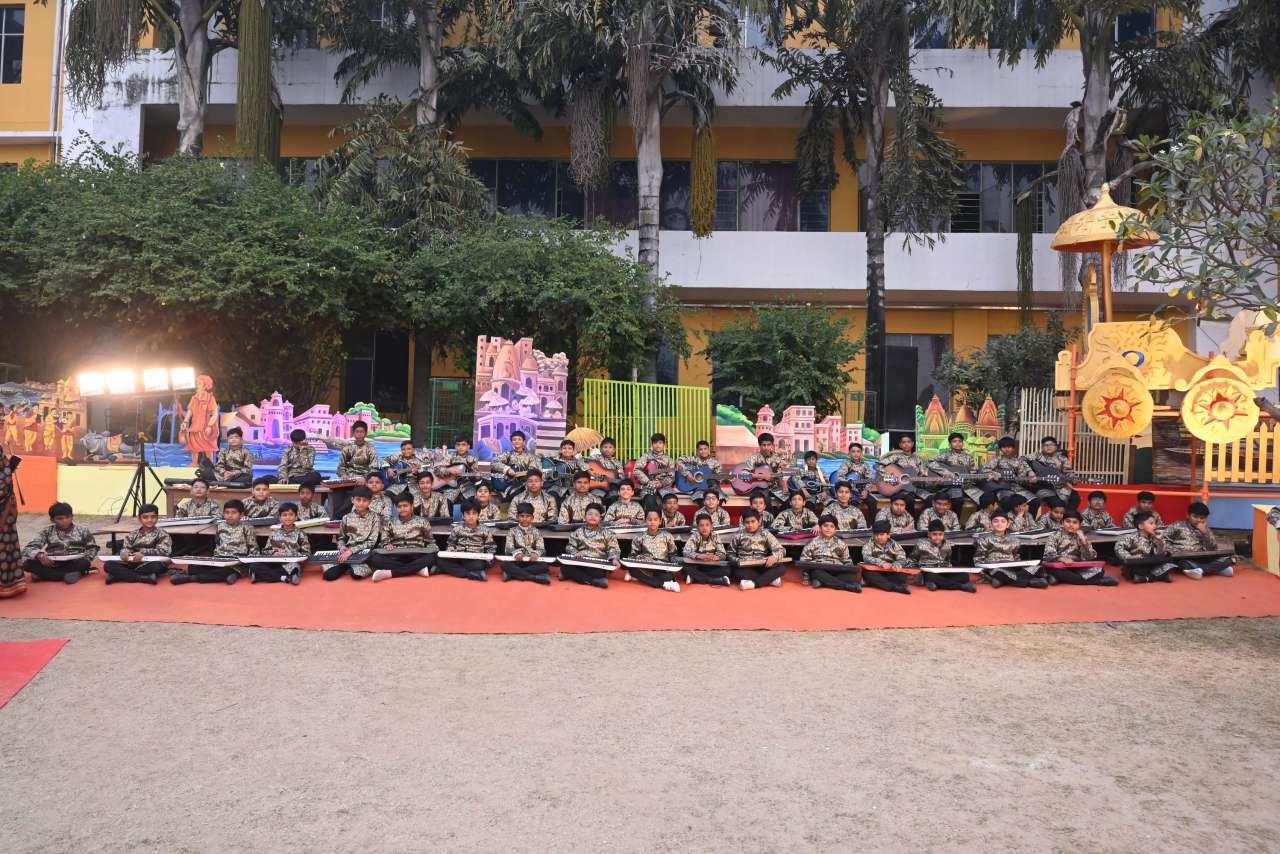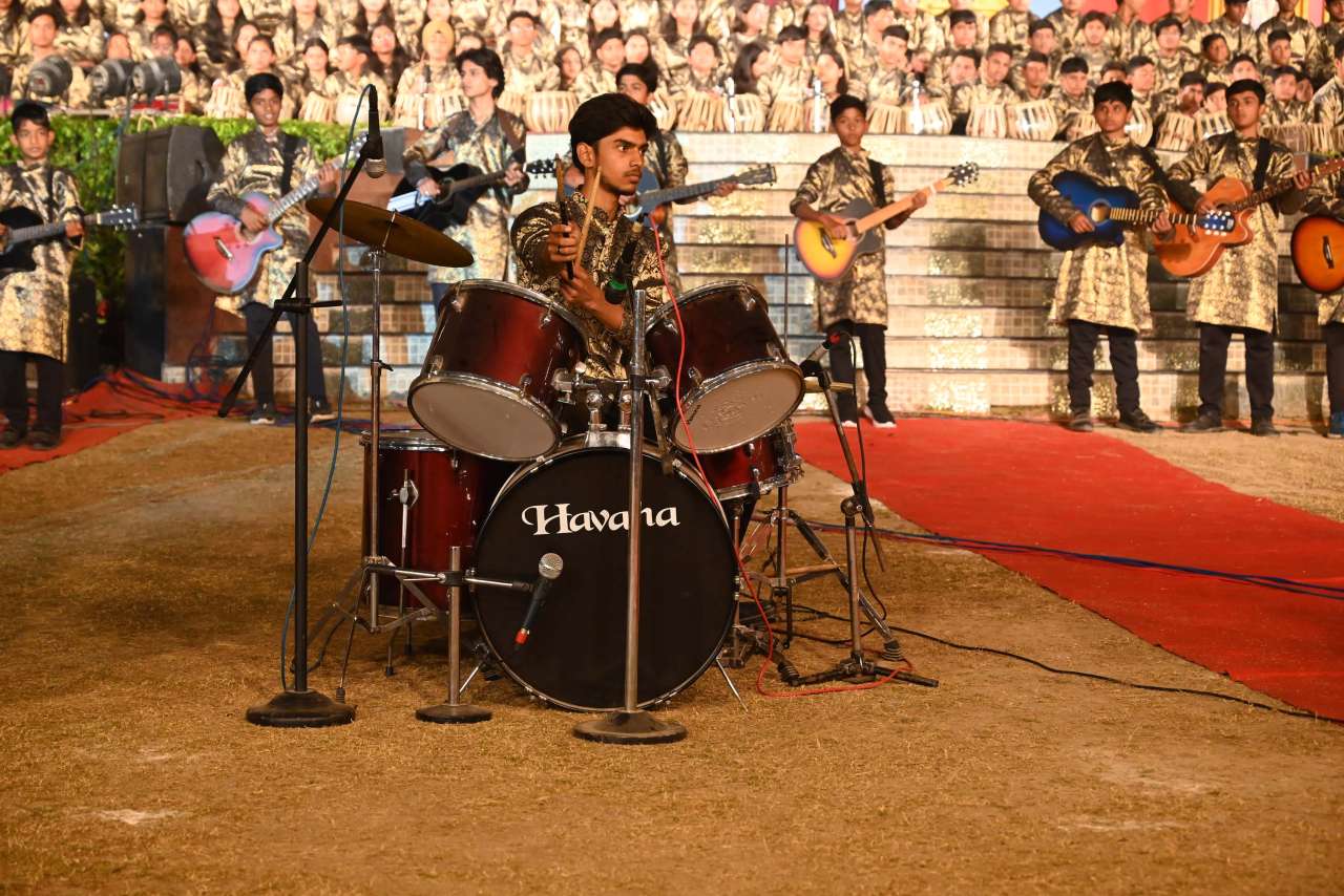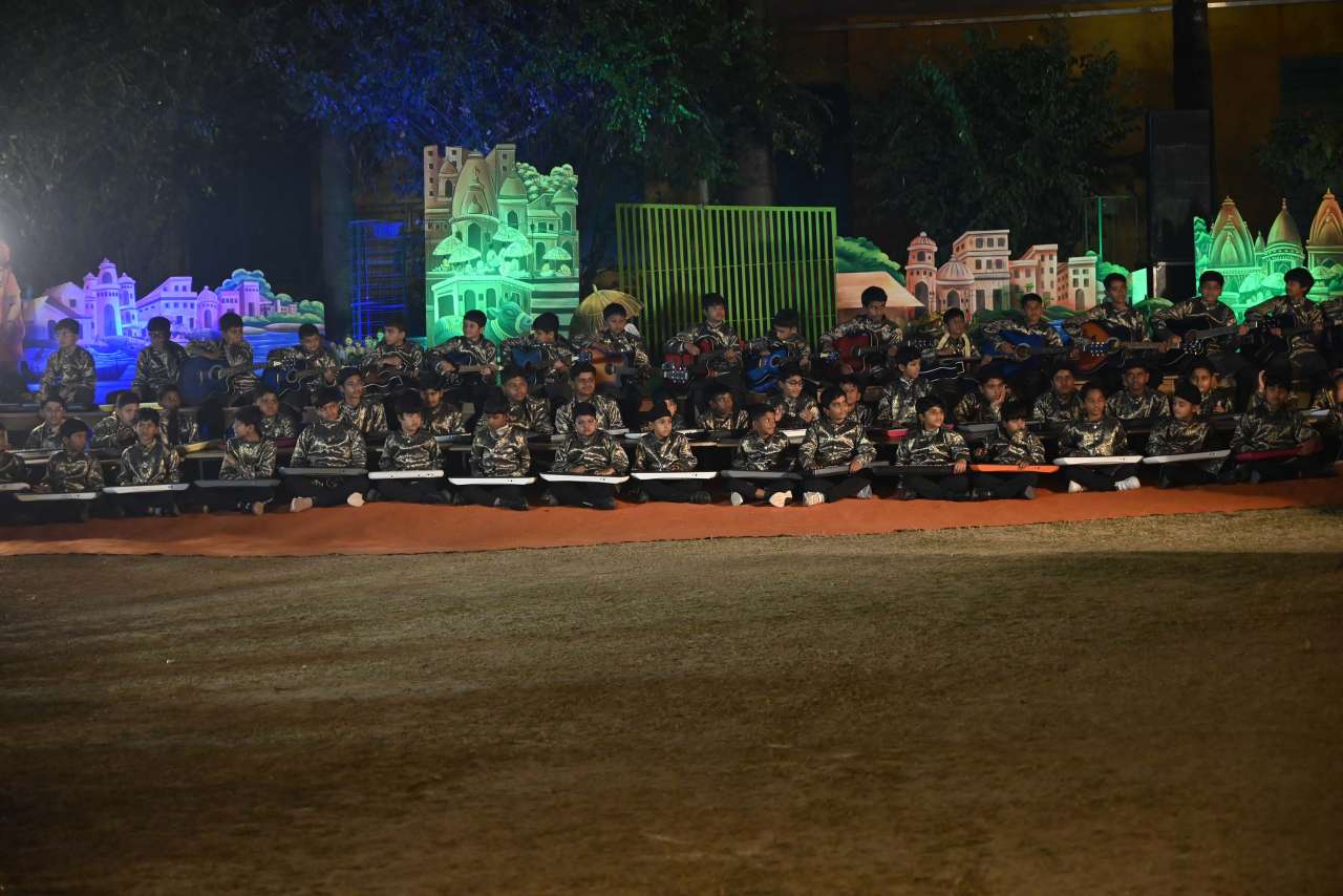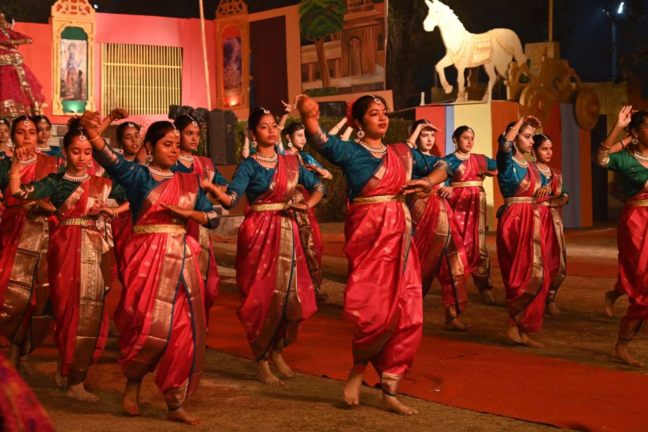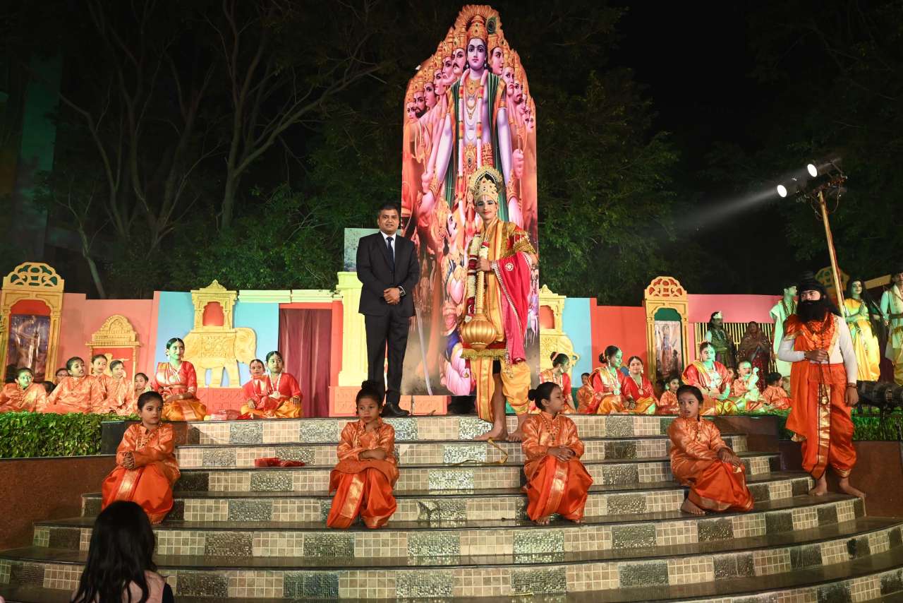 The students of DPS orchestra performed The instrumental prelude, setting a melodious tone, followed by the enchanting Sufi Rang performance that evoked the spiritual essence of Sufi traditions. Young performers from Pre-Nursery to Class 2 delighted the audience with “Straight from the Heart (Emotions)”, a touching portrayal of emotions through creative expression .The grand finale featured the Dance Drama "Dharma Rakshati Rakshitah", where around 450 students from std 3 to 12 magnanimously depicted the timeless principle that righteousness protects those who uphold it. The dance drama left the audience enchanted and enlightened, bringing the Mahabharat Characters alive on the stage, the grand impersonation of Lord Krishna in the “Vishwaroop Darshan Yoga” portrayed by lead actor Krishang Sharma std 11 received a standing ovation by the audience. The entire ground of DPS resonated with Draupadi's and Arjuna's penance portrayed respectively by Vanya Singh Std 11 and Arpan Agarwal Std 11.