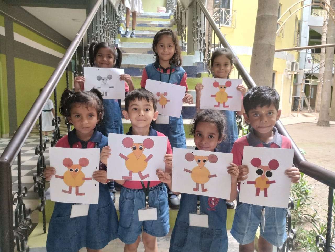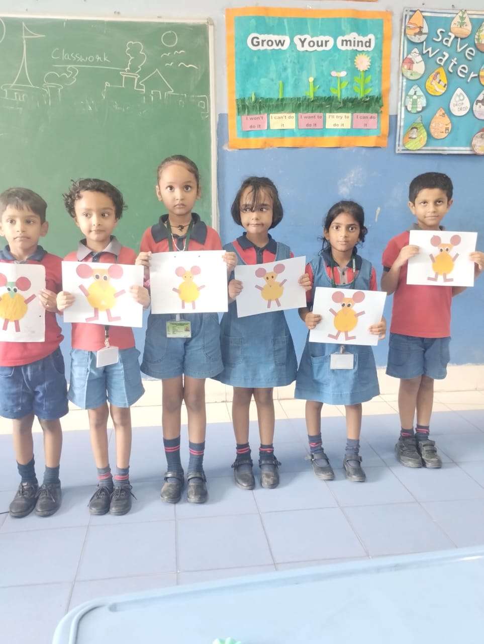 The students took part in art and craft activities such as drawing, colouring, paper folding, and making creative models. These activities helped them express their imagination and improve their fine motor skills. Storytelling and recitation activities were also conducted to enhance their speaking abilities and build self-confidence.